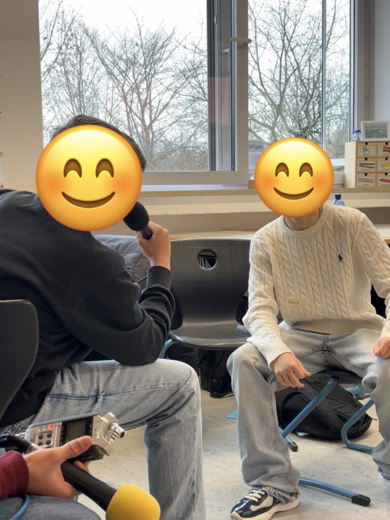 Zum Abschluss konnten die Schülerinnen und Schüler selbst aktiv werden: In kleinen Interviews stellten sie sich gegenseitig Fragen – zum Beispiel, wie sie den Workshop fanden oder wie sie es fänden, wenn die Sommerferien abgeschafft würden. Anschließend durften sie am PC mit einem Schneideprogramm arbeiten. Dabei verfälschten sie die Tonaufnahmen so, dass Antworten und Fragen nicht mehr zusammenpassten und bewusst irreführende Aussagen entstanden – echte kleine „Fake News“.